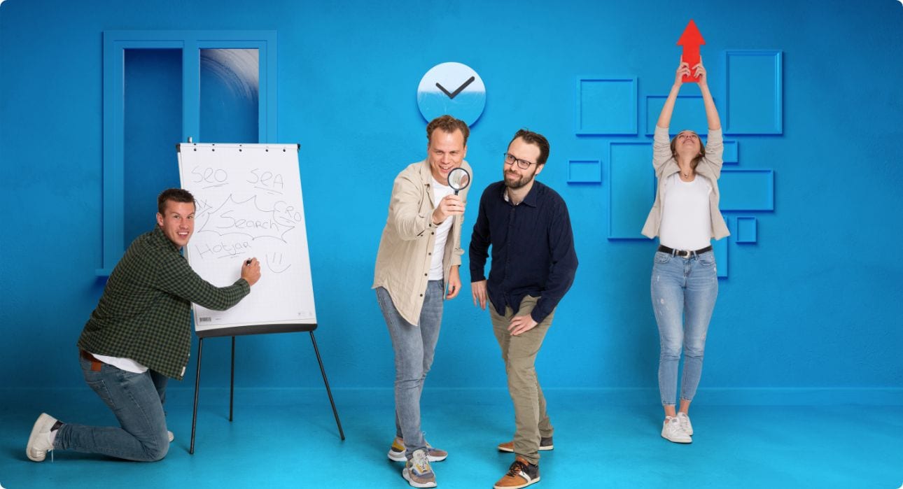 Wij zijn doeldenkers. Resultaatregelaars. En samen met jou zorgen we voor de juiste strategie én de juiste uitvoering van jouw online marketingdoel. We denken het liefst vanaf het begin actief mee. Stellen de juiste vragen. Want wil je bijvoorbeeld een nieuwe website, of ben je beter geholpen met een sterker merk? Ga je voor een campagne die je doelgroep moet bereiken, of is ‘meer nieuwe klanten’ het doel dat daarachter ligt?